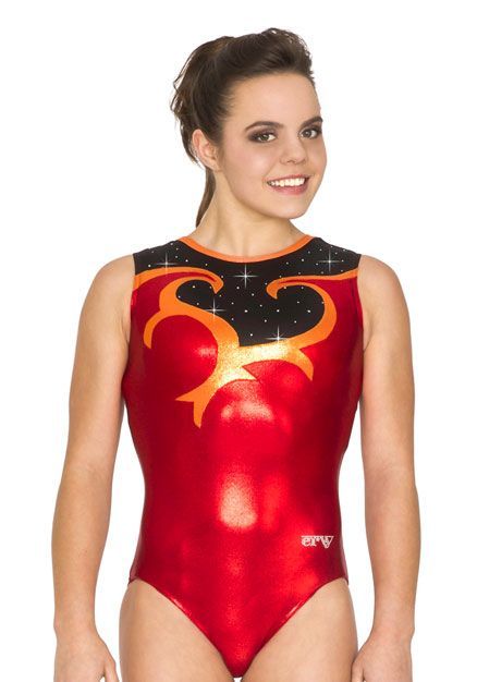 • ERVY Leotard made to order: Hellrot, Orange Lack Shine - Schwarz Super Gloss, in KOR Crystals.