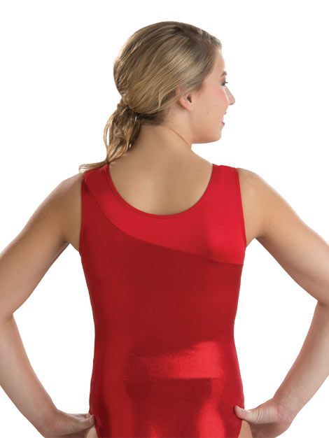 • Classic tank gymnastics leotard featuring head-turning Red Mystique & Red Nylon/Spandex body, sporty White Sparkle Hologram zig zag trim across chest, and scoop back.